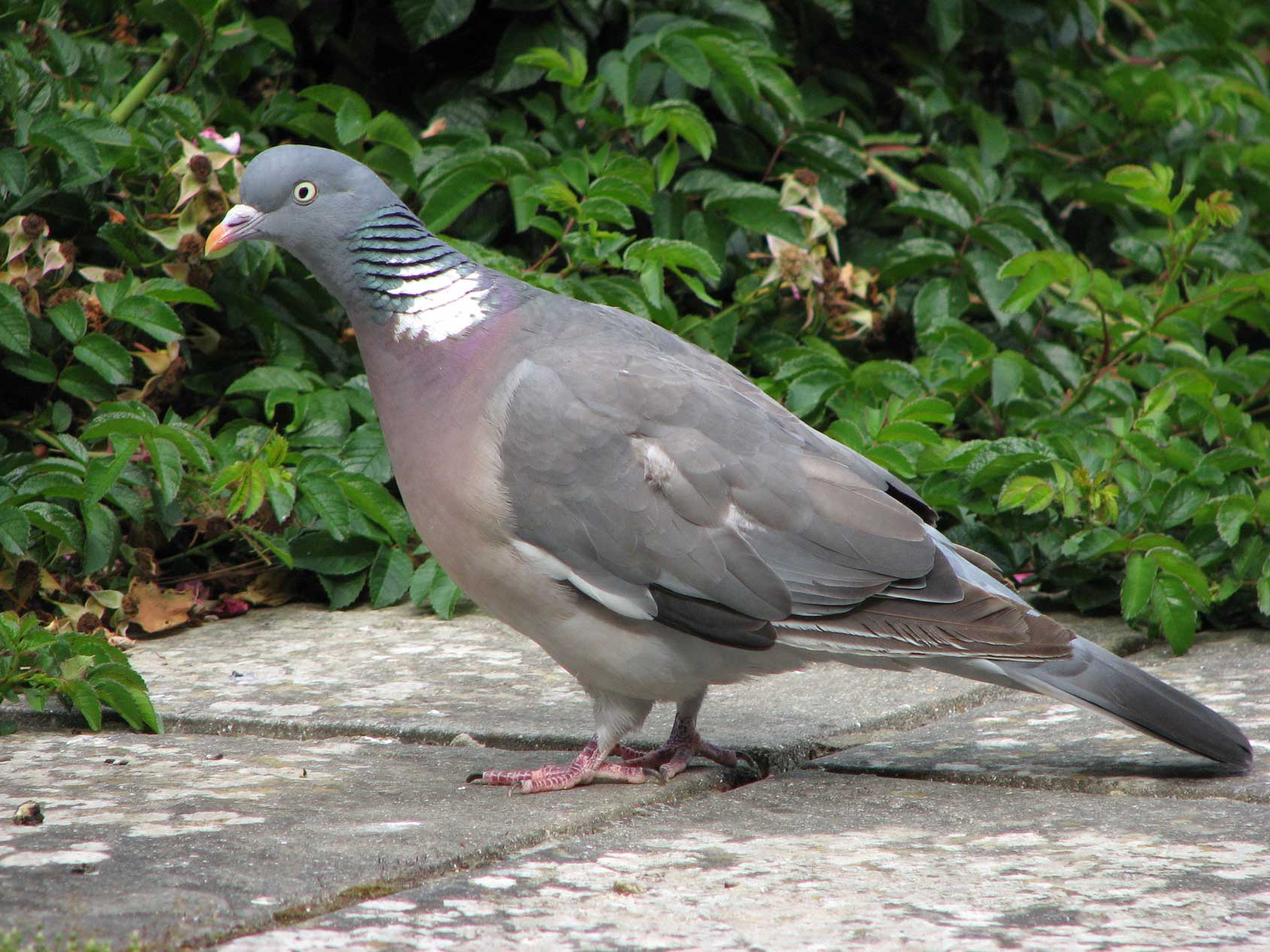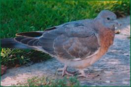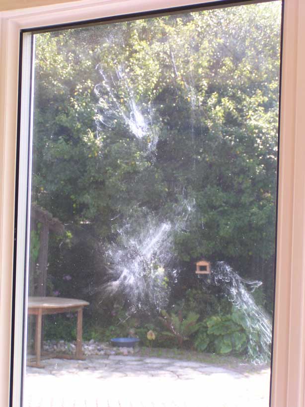 We are used to these heavy birds landing on the flat roof and giving the feeder pole a good shake when they take off from the bird table, but I physically jumped when one attempted a forced entry through a closed window one morning. I don't know where it had been, but the print it left behind shows a level of anatomical detail that none of my photos will ever capture! Click on the picture to enlarge. Photograph (right) - August 2005 |