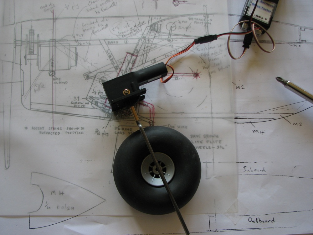 As you might imagine, choice of retracts was fairly high on the agenda. Ivan's plan shows home made units, which I used successfully on the Welkin. However, since then electric retract units have become available quite cheaply and, after researching on the forums, we eventually settled on the PZ-15091 units made by PingZheng Science Technology Co. Ltd. in China. Already, just two months on from making our choice, their range has expanded again.