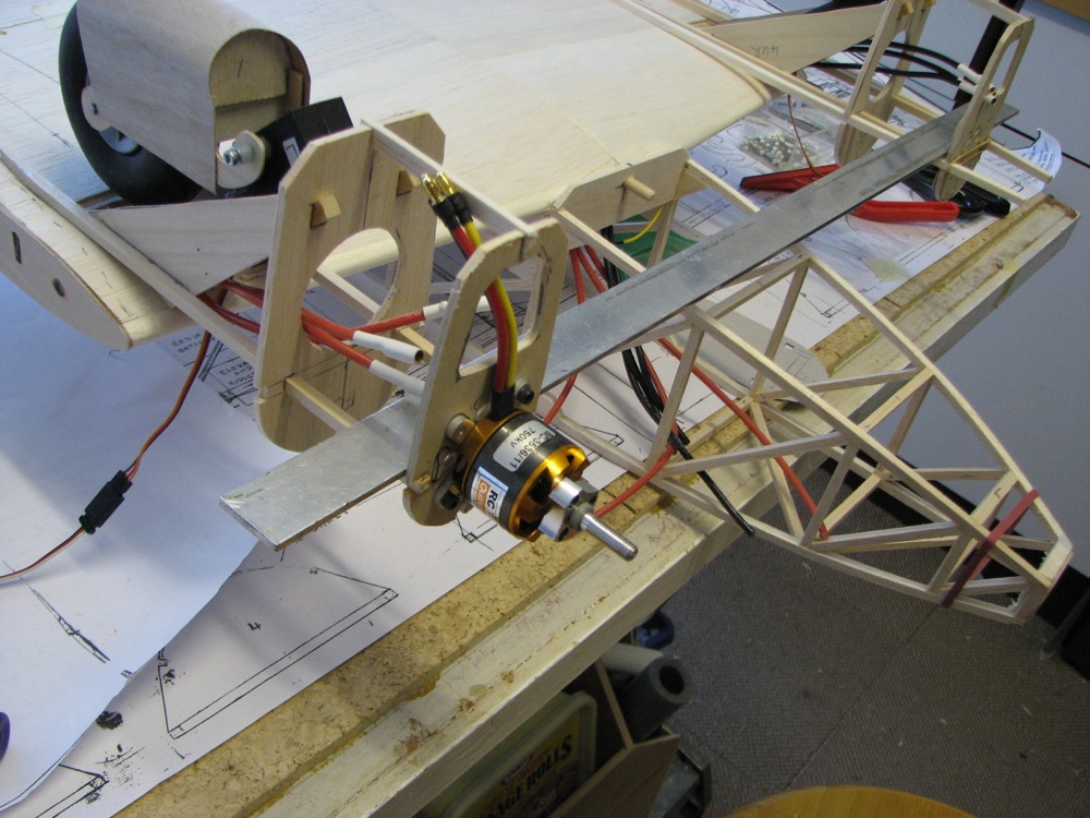 Another area of discussion was the choice of power train. Ivan's model ran on 18 NiCd cells, pulling 30amps, with the motors mounted in series. I have more or less standardised on 3000mah batteries and usually aim to use about 2000mah in a 10min flight. That would imply an average current draw of only 12 amps. On a 3s pack, that equates to only about 140W which is a bit low for a model of this size (80in wingspan, about 6lb AUW) so I was keen to use a 4s x 3000mah battery if possible.
