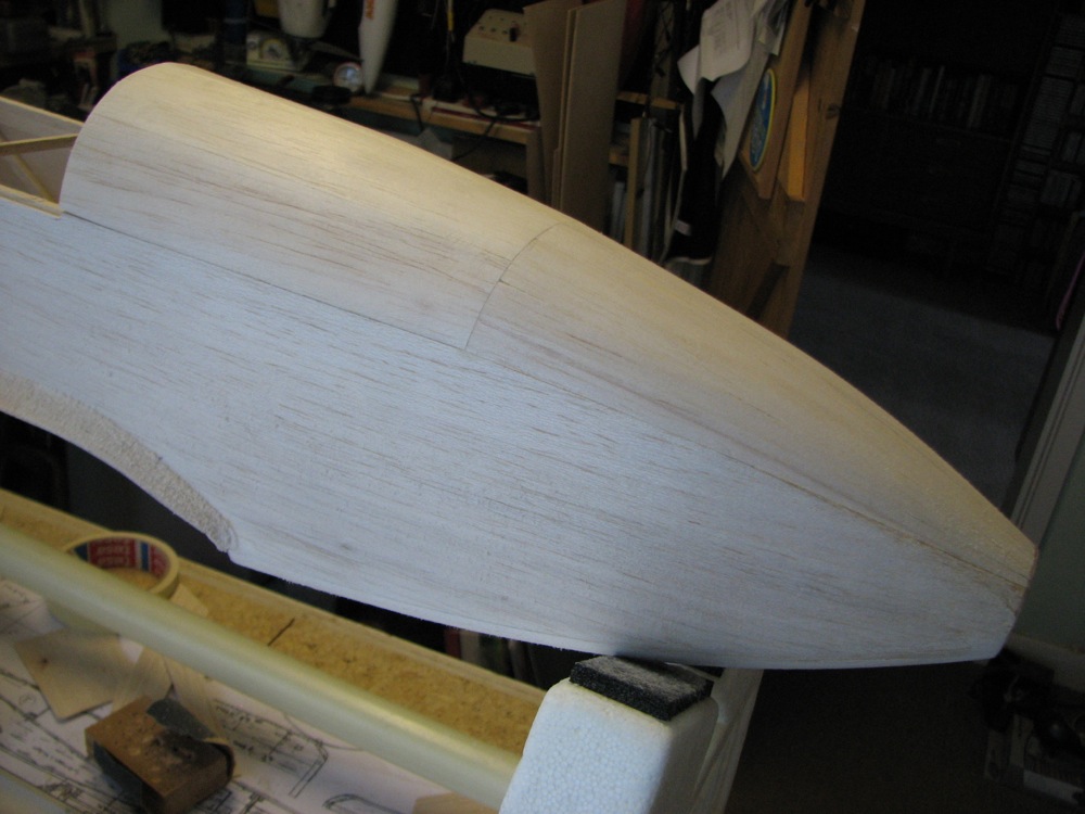 In the last few days of the year attention returned to the fuselage. The tail surfaces are now glued in position, the fuselage underside is sheeted in and the turtle deck and tailcone fairing are underway.