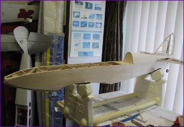 The rear portion of the centre section ribs was added next, with a rear spar 'egg box' joined to the ribs to provide a hinge line for the flaps.