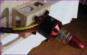 The motor box was made from 1/8in ply, suitably fretted out. 4mm captive T nuts were fitted to the front plate which was then installed with balsa strips being used to increase the gluing area.